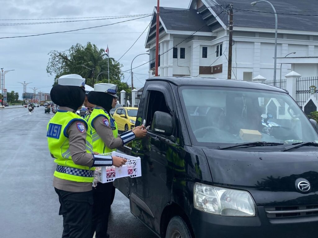 Faktasulbar.com – Dalam suasana kedekatan dan kepedulian pada bulan suci Ramadhan, Ditlantas Polda Sulawesi Barat menggelar kegiatan berbagi takjil sekaligus memberikan himbauan berlalu lintas kepada masyarakat, Selasa, (24/2/26) di Bundaran Arteri Mamuju yang menjadi salah satu titik lalu lintas strategis di ibu kota Provinsi Sulawesi Barat.