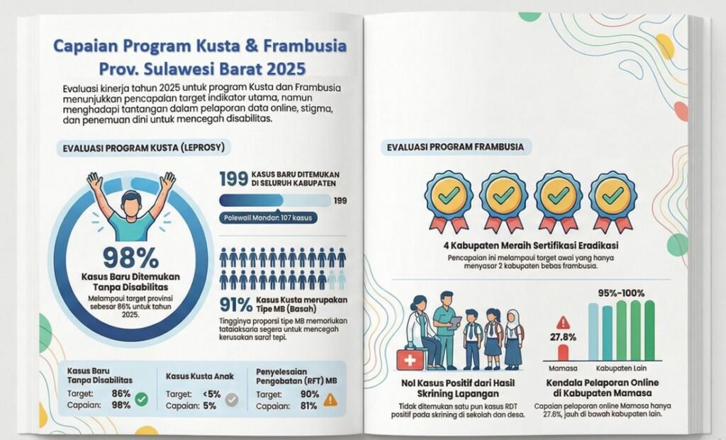 Faktasulbar.com Mamuju — Dinas Kesehatan, Pengendalian Penduduk dan Keluarga Berencana (DKPPKB) Provinsi Sulawesi Barat mencatat capaian positif dalam pelaksanaan Program Kusta dan Frambusia Tahun 2025.