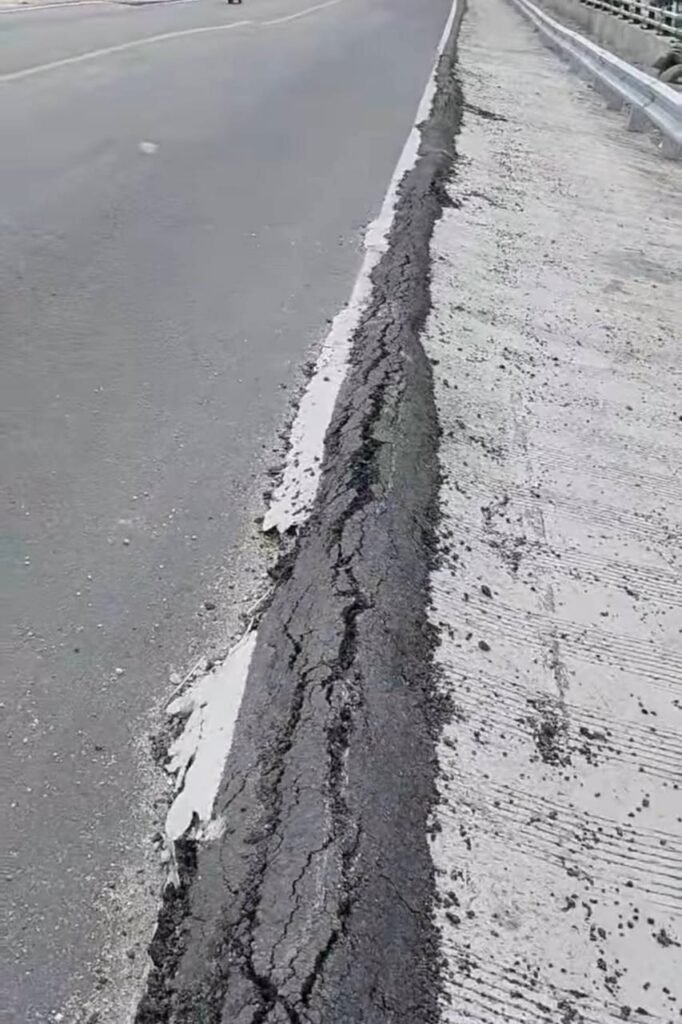 “Setelah kami melakukan pengecekan saya melihat ada bekas longsor, akibat curah hujan tinggi yang mendorong badan jalan pak sehingga ada keretakan di sambungan aspalnya”, jelasnya melalui telepon WhatsAppnya, Minggu (11/1/26).