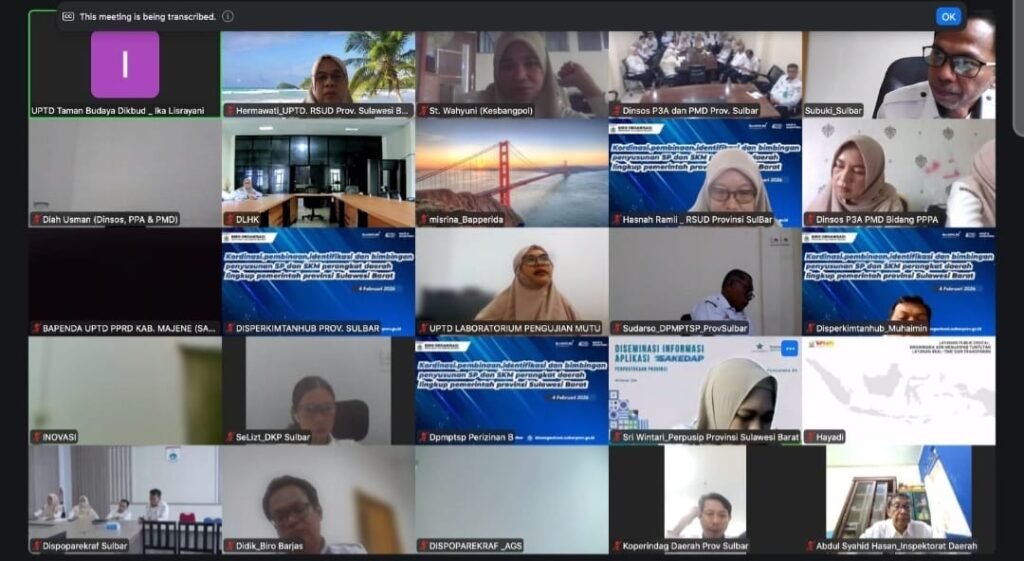Mamuju – Pemerintah Provinsi Sulawesi Barat melalui Biro Organisasi dan Tata Laksana (Ortala) menggelar Rapat Koordinasi Pembinaan dan Identifikasi Penyusunan Standar Pelayanan (SP) dan Survei Kepuasan Masyarakat (SKM) secara daring melalui Zoom Meeting, Rabu (4/2/2025). Kegiatan ini diikuti oleh OPD dan UPTD se-Provinsi Sulawesi Barat serta menghadirkan Kepala Bagian Ortala, Bapak Subuki, sebagai narasumber utama.